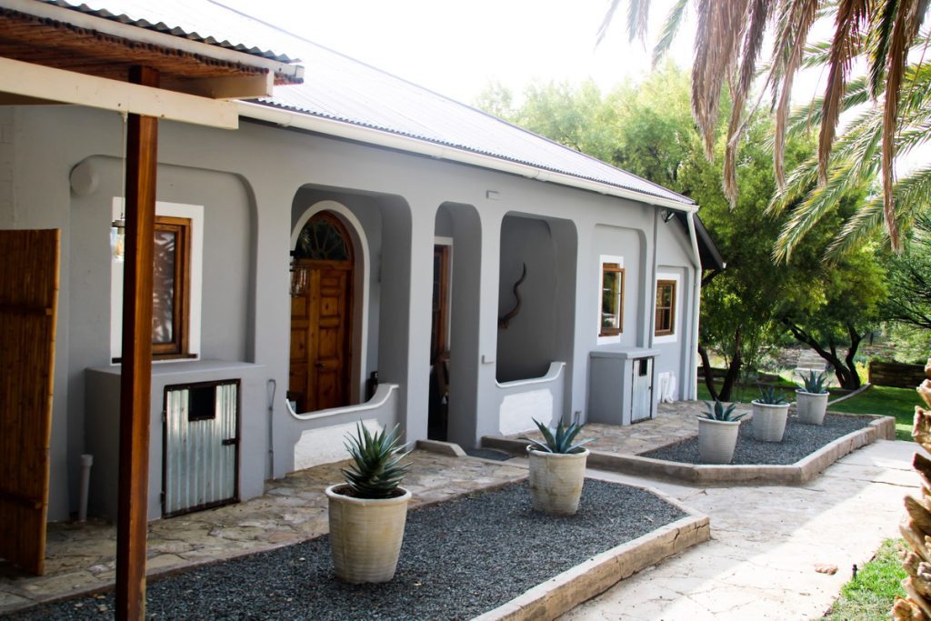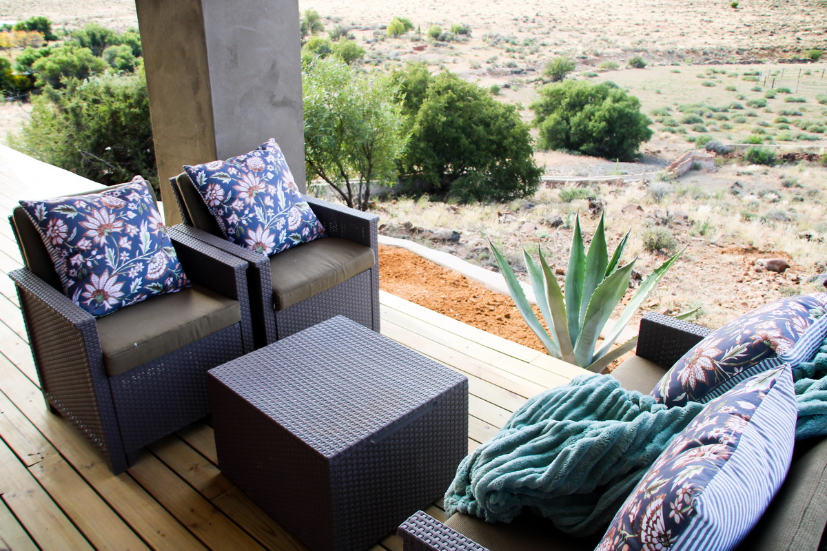 Oudam (Old Dam) cottage is our current renovation project situated around the old round cement dam located on a little hill with beautiful views of the farmyard and surroundings. It consists of 2 double ensuite bedroom with an open plan kitchen opening to a wooden deck with great under cover outside “braai”. It is ideal for families of up to 4 members.